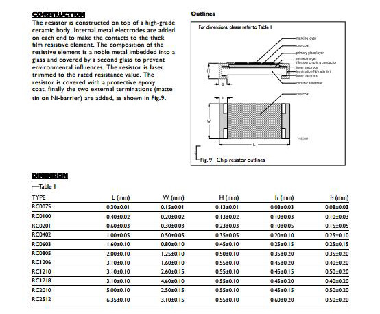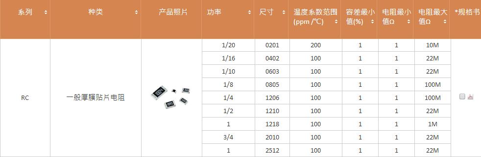 国巨贴片电阻参数: