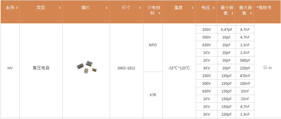 贴片电容耐压及额定电压规格有:4v、6.3V、10V、16V、25V、35V、50V、100V、250V、500V、630V、1kV、2kV、3kV、5kV等...